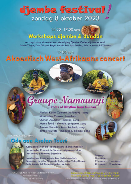 Sunday 22 may 2016 we celebrated the release of this publication in Rotterdam, the Netherlands. A tribute to Arafan Touré’s musical heritage, with workshops and performances by Arafan’s students with some of Arafan’s former colleague musicians from Guinea as special guests.